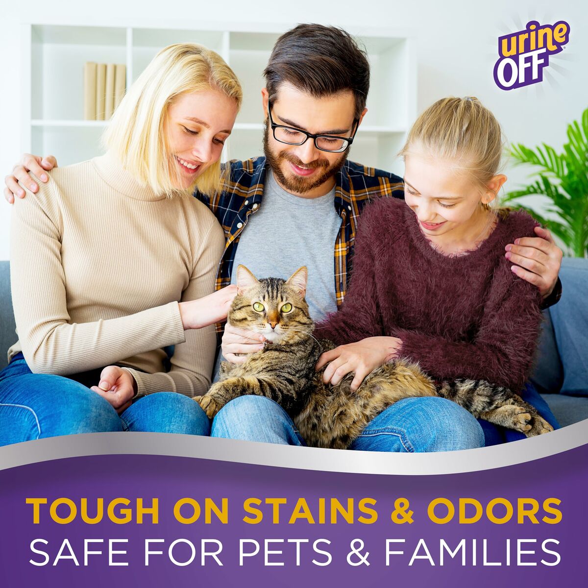 Urine Off Cat & Kitten Formula is a veterinarian-recommended product for feline urine odor and stain removal. Urine Off Cat & Kitten Formula uses bio-enzymatic technology and a high bacteria concentration to specifically target cat and kitten urine, permanently removing stains and odors from virtually any surface. The combination of micro-organisms and their enzymes in our non-pathogenic bacteria work together to breakdown the uric acid that produces urine’s pungent aroma and the urea that sticks to the surface, effectively removing all components of the urine, when used as directed. Urine Off is a USDA Certified Biobased Product and holds the Carpet and Rug Institute's Seal of Approval. Urine Off is safe to use around pets and people.